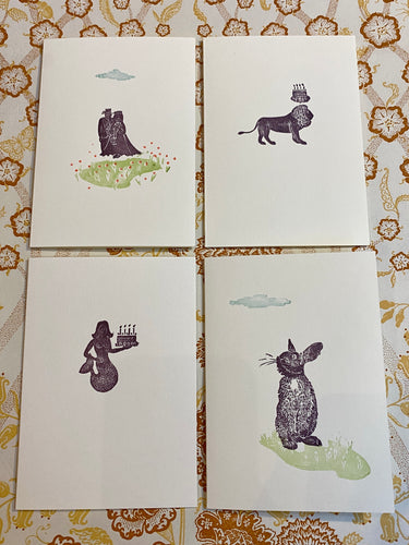 Set of 4 postcards hot air balloon / 気球ポストカード 4枚セット / Set de 4 cartes postales montgolfiere